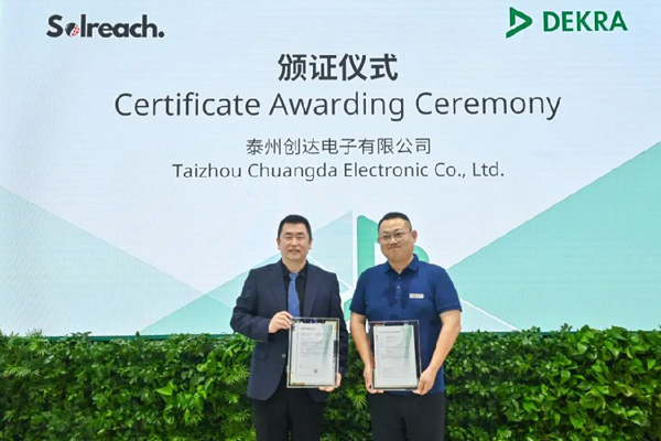 近日,泰州創(chuàng)達(dá)電子有限公司(以下簡(jiǎn)稱(chēng):創(chuàng)達(dá)電子)旗下光伏用接線(xiàn)盒產(chǎn)品獲得DEKRA德凱碳足跡證書(shū)。本···